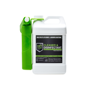 OxyTurf is a powerful synthetic turf cleaner that kills 99.9% of germs and bacteria using the trusted ingredient Hydrogen Peroxide. OxyTurf knocks out bacteria and viruses like Influenza A (H1N1) virus, Staphylococcus aureus, Escherichia coli, Salmonella enterica, Pseudomonas-aeruginosa, and many other harmful bacteria and viruses without soaking turf in chemicals!